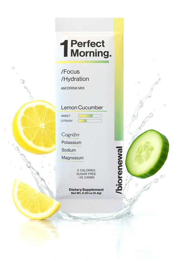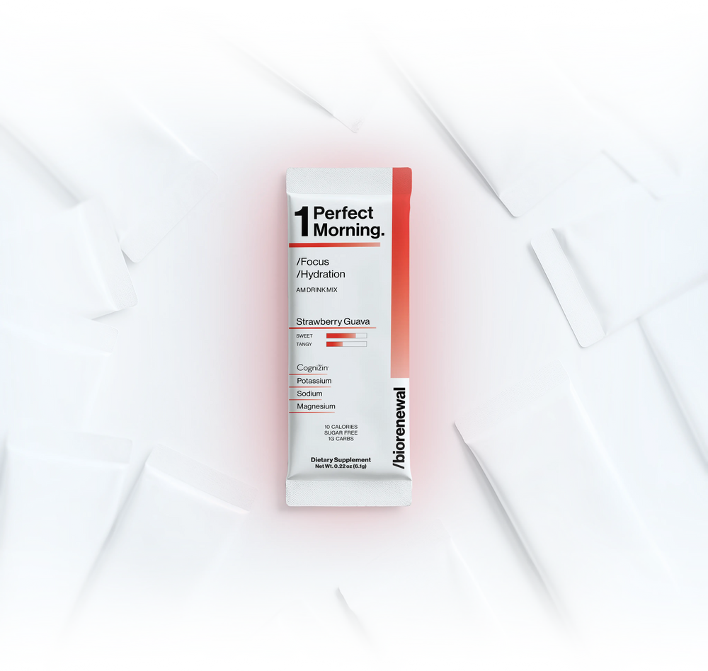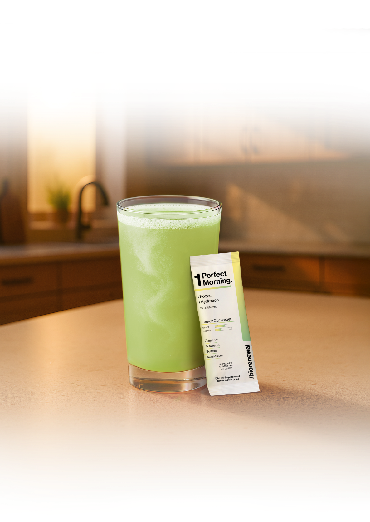 One Perfect Morning (AM supplement) is designed to help you kickstart your day—supporting energy, hydration, and mental clarity. Think of it as a key part of your morning protocol.